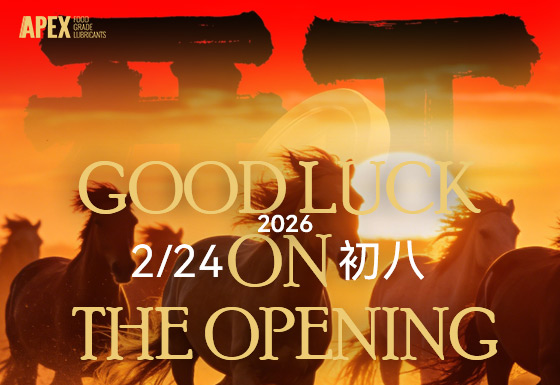 2026年是农历丙午马年,象征着奋进与超越。在新一年的战略布局中,APEX将继续依托强大的技术专家团队,深耕食品工业、和绿色战略性新兴产业,以“一马当先”的创新精神,应对行业中的各种挑战。为客户提供更安全、更高效的润滑解决方案。”