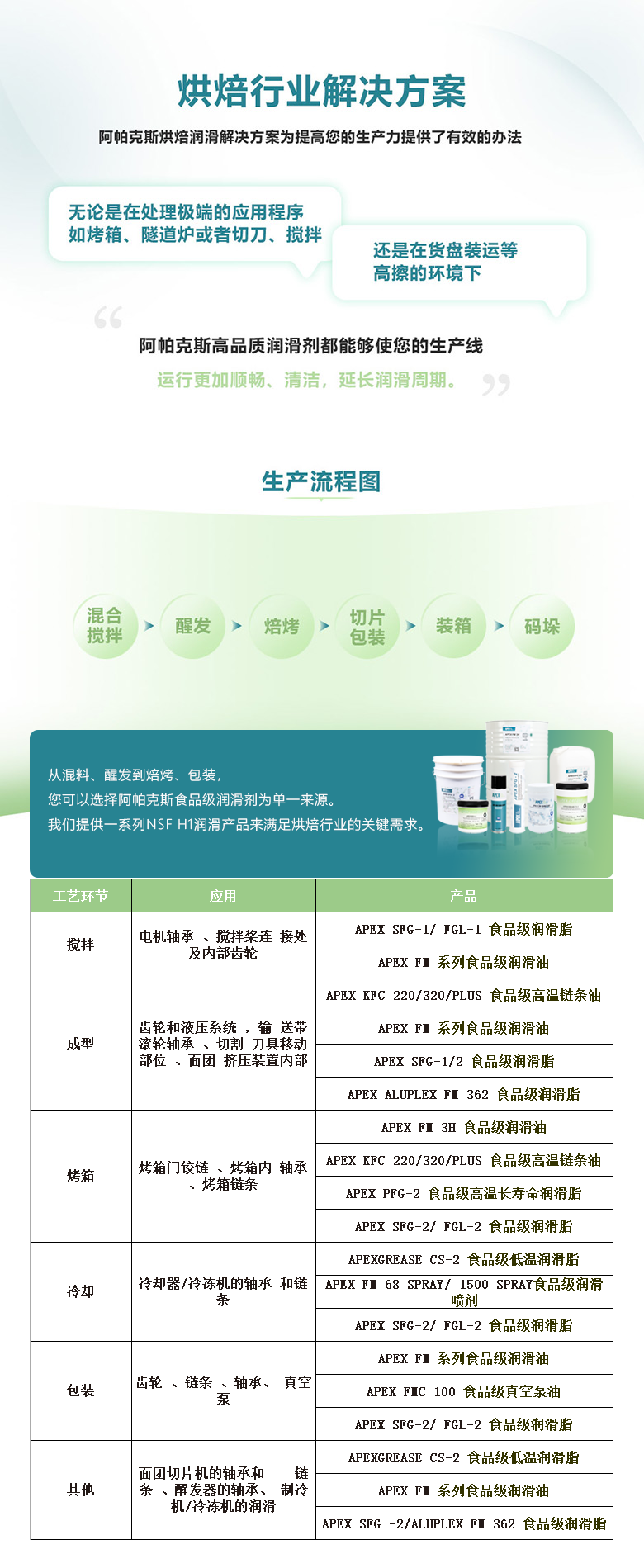 Apex专为食品加工行业设计的润滑剂,法国食品级润滑剂品牌。